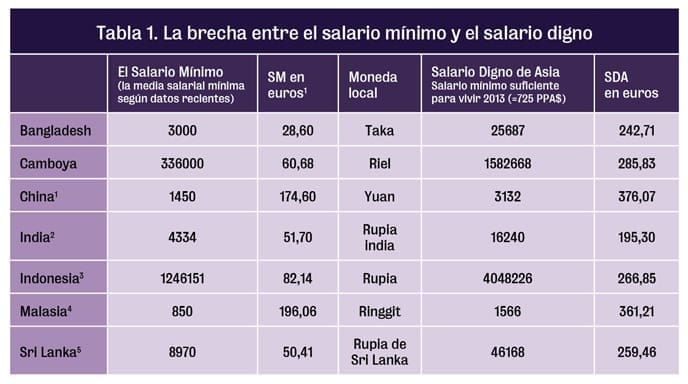 Campaña Ropa Limpia está haciendo presión para que todos los trabajadores y trabajadoras reciban un salario digno . Creemos que el salario mínimo debe ser un salario digno que permita a una trabajadora de la confección ganar lo suficiente en una semana «normal» de trabajo (no más de 48 horas) para poder alimentarse y alimentar a su familia, pagar el alquiler, atención médica, ropa , transporte y la educación y una pequeña cantidad de ahorro para cuando sucede algo inesperado.