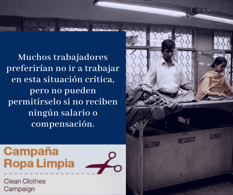 La pandemia mundial del COVID-19 continúa creciendo y extendiéndose. La mitad de la población mundial está bajo algún tipo de aislamiento o restricción de movimiento con el fin de controlar la propagación del coronavirus. Las trabajadoras del textil de la cadena de suministro global, que ya hacen frente a salarios de miseria y situaciones de vida precarias, se ven expuestas a una inseguridad creciente a medida que cierran las fábricas por la disminución del número de pedidos y que los gobiernos paralizan la fabricación para proteger la salud pública.