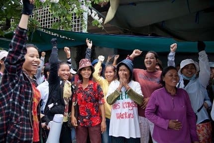 «Cuando nos enteramos de la noticia todas nos pusimos a gritar. Estábamos muy felices». Or Skuong es una de las trabajadoras que ha resistido estos meses delante de la fábrica.