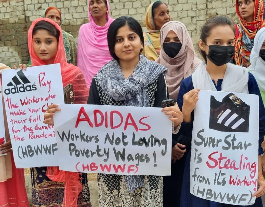 A pesar de que en 2021 Adidas obtuvo un beneficio neto de más de 2.300 millones de dólares, la marca se niega a asumir la responsabilidad del robo de salarios en su cadena de suministro. Sólo en Camboya, a más de 30.000 trabajadoras de 8 fábricas que producen ropa de Adidas se les deben 11,7 millones de dólares. Adidas sólo tendría que pagar 10 céntimos más por producto para garantizar que su cadena de suministro está libre de robos salariales. Dado que la marca está dispuesta a pagar más de 800 millones de dólares por patrocinar a la Fifa, parece poco probable que no pueda permitírselo.