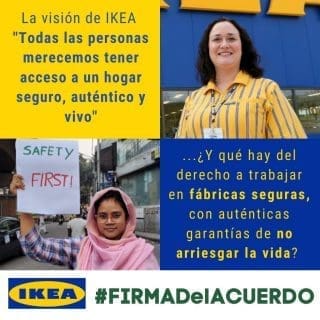 Para garantizar la seguridad de las personas trabajadoras en las fábricas de ropa, es vital que todas las marcas que se abastecen en Bangladesh firmen el Acuerdo cuanto antes. Por ello, la red de la Campaña Ropa Limpia hace un llamamiento a IKEA, Levi’s y al resto de marcas no firmantes, como Gap, Desigual, Walmart,The North Face o Alcampo.