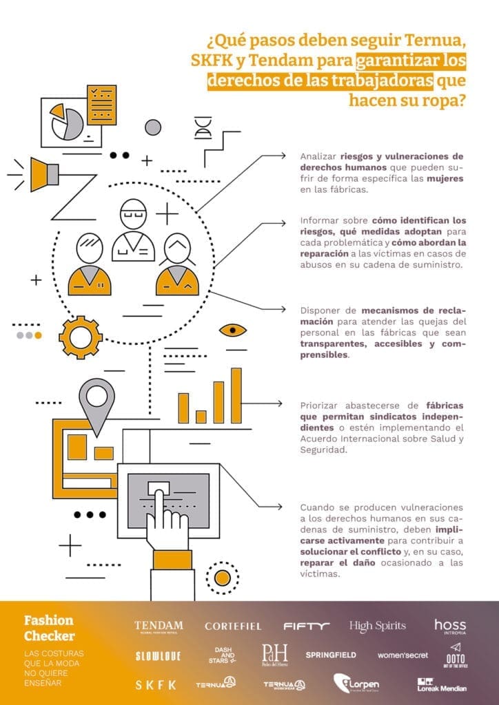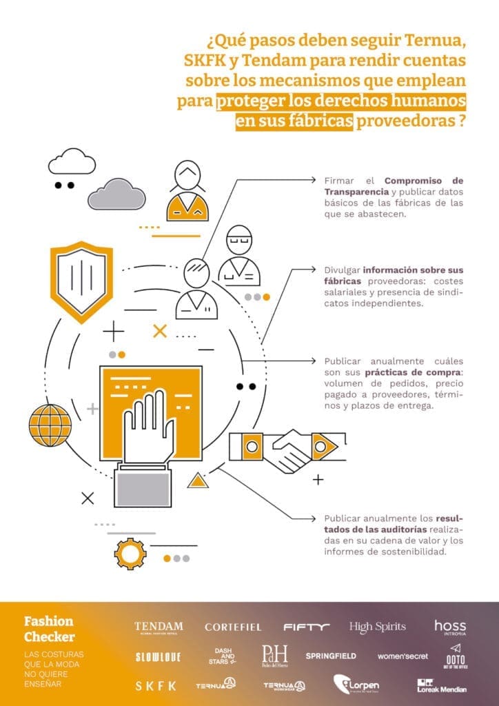 El objetivo de este informe es ofrecer un recurso a las personas consumidoras para que tengan información sobre cómo abordan las marcas analizadas la protección de los derechos humanos. También buscamos concienciar respecto a las violaciones de derechos a las que se enfrentan las trabajadoras textiles en las cadenas globales de producción.