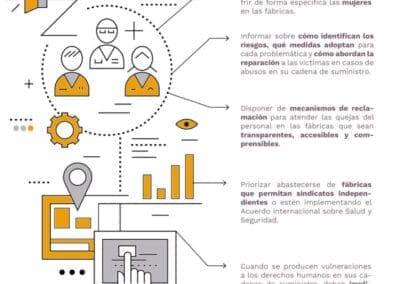 Por último, queremos aportar recomendaciones e influir para que las empresas dispongan y apliquen mecanismos efectivos que garanticen condiciones laborales dignas en sus cadenas de suministro: