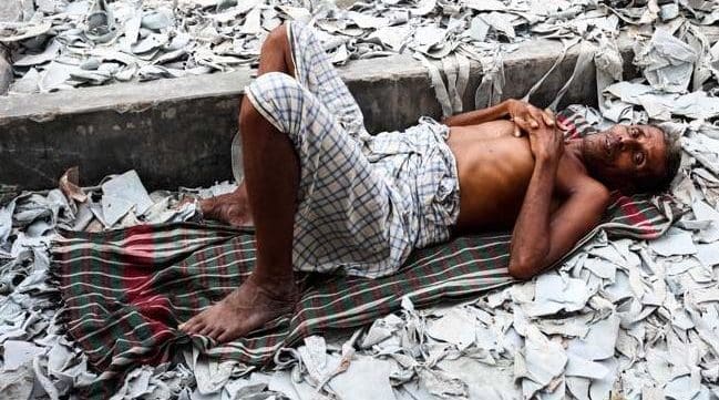 Araz Miah tiene 55 años y trabaja en una curtiduría en Hazaribagh (Bangladesh).